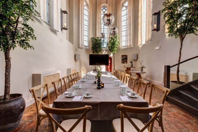 Naast restaurant De Heeren van Montfoort, waarmee Geke zijn horeca avontuur begon, exploiteert hij de Commanderije van Sint Jan, Kasteel Montfoort en Tuin de Hoge Waard. Allemaal zijn ze gerestyled onder het toeziend oog van topdesigner Eric Kuster. ‘Hij doet het super, samen met mijn vrouw zoeken ze mooie dingen uit en Eric snapt dat de locaties multi-inzetbaar moeten zijn. De Commanderije is onlangs verbouwd en weer naar het nu gebracht. De kapel is licht dankzij de vide en vormt een mooie locatie voor een bruiloft, diner of vergadering. Het leuke van de locaties is dat we over binnen- en buitenplekken beschikken en dat ze dichtbij elkaar liggen. Gasten kunnen vergaderen bij de Commanderije en daarna een borrel drinken bij Kasteel Montfoort of de Heeren van Montfoort. Tuin de Hoge Waard is een bijzondere buitenlocatie met vijvers, een buitenbar en zitplekken. De tuin ligt hemelsbreed zo’n vijfhonderd meter van het centrum, daarom hebben we nu onze eigen golfkarretjes waarmee we gasten naar een volgende locatie brengen. Als gasten met een rood hoofd binnen komen, staan wij 1-0 achter en dat willen we natuurlijk niet! Daarom hebben we zestig eigen parkeerplekken rondom de kerk en nog veertig elders in het centrum. En we werken samen met het Yuverta vmbo in Montfoort (het oude Wellantcollege) Daar hebben we nog eens honderd extra plekken, als het bij hen uitkomt, en als we echt om het hand zitten.’