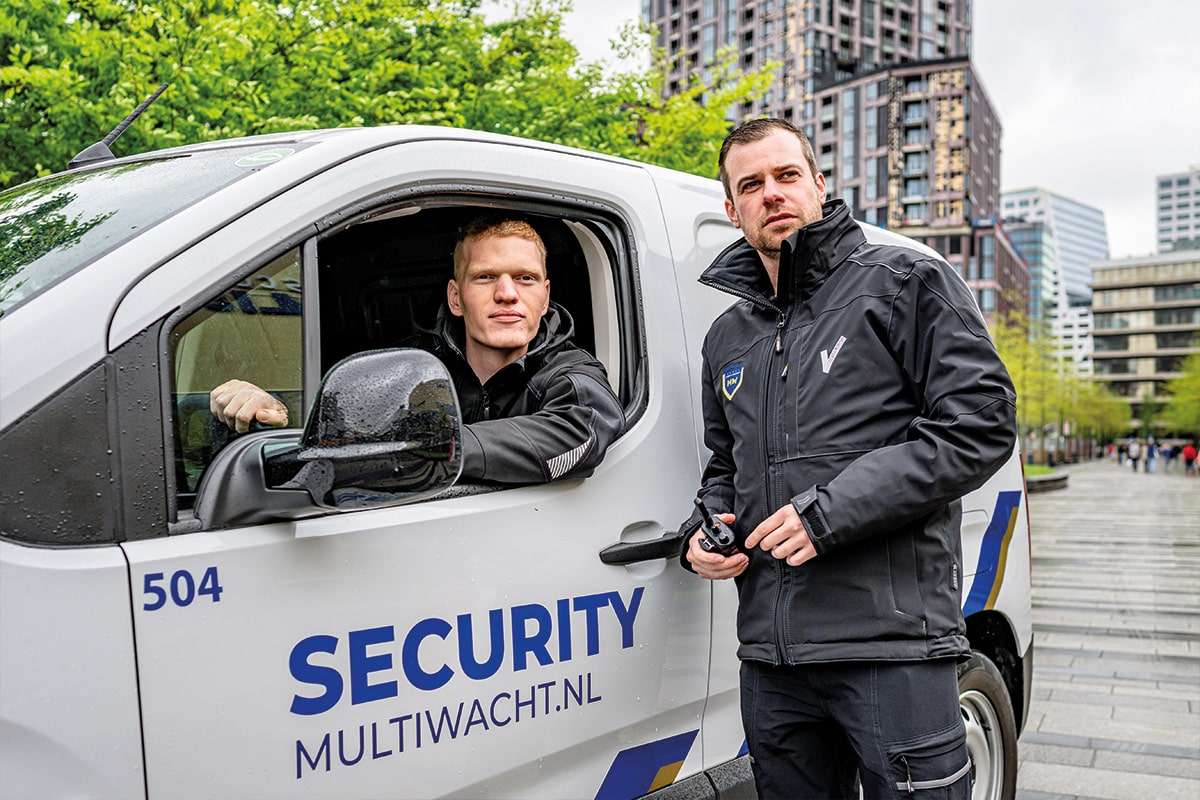 Commercieel Manager Martin Brienesse sluit zich aan bij de woorden van Leon. ‘Naast de richtlijnen vanuit Justitie hebben we onze persoonlijke smaak kunnen verwerken in het logo. Inmiddels hebben we alles vervangen, waaronder onze bedrijfskleding en het wagenpark.’ Multiwacht gaat in het geheel over op elektrische auto’s en het wagenpark is inmiddels voor 95 procent vervangen. ‘Onze voertuigen zijn, net als onze medewerkers, een visitekaartje van ons bedrijf’, vertelt Martin. ‘Naast duurzaamheid is een voordeel van elektrisch rijden dat men ons niet hoort aankomen. Dat helpt ons in het werk. Over de hele linie komt duurzaamheid terug in de bedrijfsvoering. Wij willen dat, en klanten verlangen dat steeds meer. Je ziet het bijvoorbeeld vaker terugkomen in een aanbesteding.’