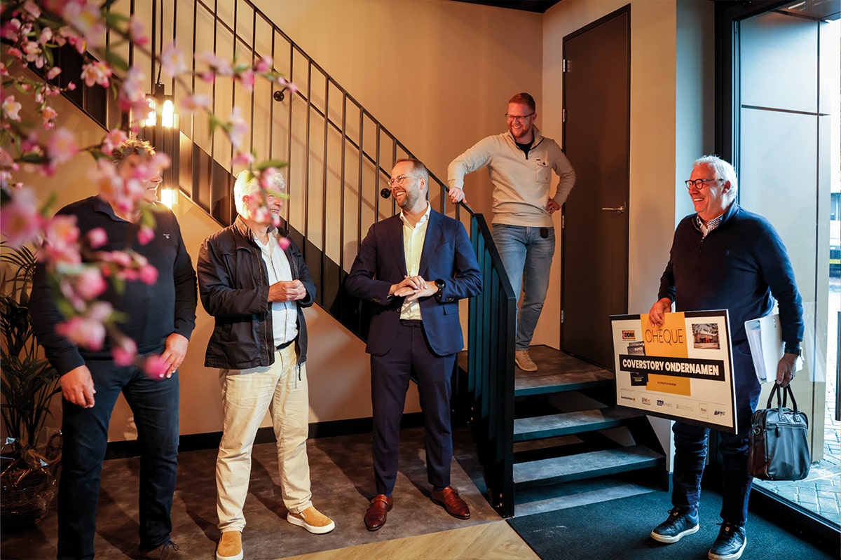 Speciaal voor de gelegenheid, ter afsluiting van een geslaagde bouwperiode, is het bouwteam afgereisd naar het kantoor van DDM in De Meern. Bouwpartners Kwakkenbos, Schlingmann Architecten, Priotec Technisch Aannemer BV, Total4Projects, BloksDesign en Brian Franken Technieken vonden een aandenken en attentie wel op zijn plaats. Daarom staan ze op een maandagochtend met een symbolische cheque in de hand. Het cadeau? De coverstory in OnderNamen. ‘Ik wist van niets’, bekent Theo, ‘maar ik vind het leuk natuurlijk.’ Wat de afgelopen periode betreft – van het ontwerp tot aan de uitvoerende fase en de oplevering – zijn de bouwpartners eensgezind. De sfeer op en rondom de bouw was goed. ‘Wat typerend was, was dat nog voor de bouwvergadering begon, het probleem vaak al was opgelost’, vertelt Ton van der Meer, van Brian Franken Technieken. ‘De collega’s hadden elkaar negen van de tien keer al gevonden voordat iets een formeel discussiepunt zou kunnen worden. Er waren geen “eilandjes”. Het helpt dat we elkaar al kenden van voorgaande projecten.’ Dat geldt ook voor Theo en Michel Kwakkenbos. ‘Wij hebben in het verleden vaker met elkaar gewerkt, zelfs nog in de tijd van Michel zijn vader. Van daaruit hebben we een bouwteam opgesteld. We zijn niet gaan lopen “venten” tussen de partijen, maar hebben keuzes gemaakt op basis van vertrouwen. We hoeven elkaar geen poot uit te draaien. Ik denk dat dit erin heeft geresulteerd dat de onderlinge sfeer heel goed was.’